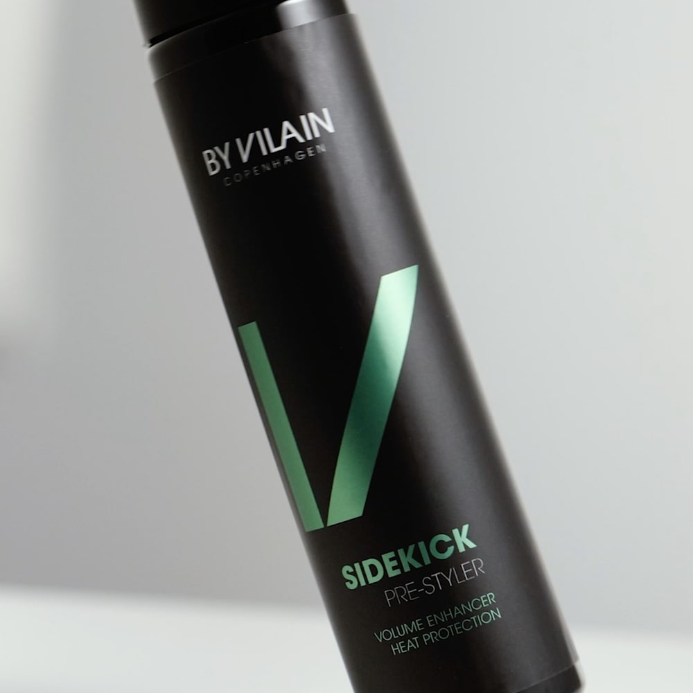 By Vilain Sidekick (5.24 fl. oz./155 ml) is a volume enhancing pre-styling spray with heat protection developed to keep your hair in place all day. It provides hold, volume, and a healthy-looking, natural shine. At the same time, it shields the hair from heat up to 300° C. Sidekick keeps your hair nourished, hydrated, and even better looking.